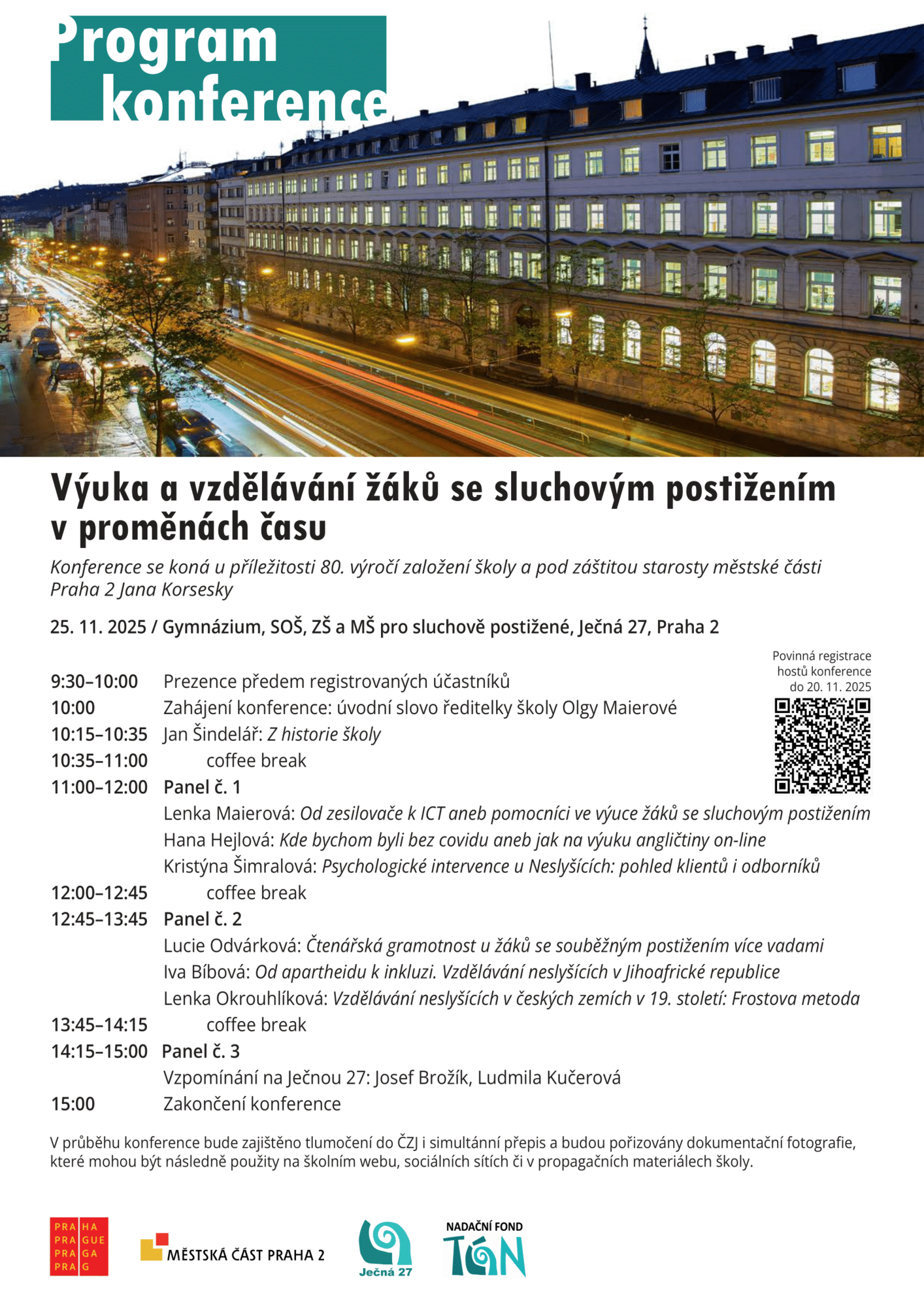 Program konference “Výuka a vzdělávání žáků se sluchovým postiženímv proměnách času“